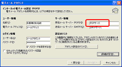 | 旧メールサーバに届いているメールを確認・受信する場合は、お客様でご利用のメールソフトの“メールサーバ設定”を “POPサーバー名” から “旧メールサーバー名” に変更していただく必要がございます。 | |||